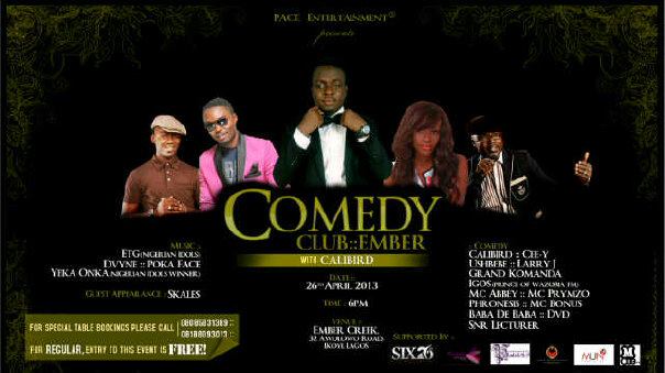 Comedians: Mc Abbey, Igos, Ushbebe, Larry J, Grand Kommanda, Phronesis, Cee-Y, Laugh Doctor and more